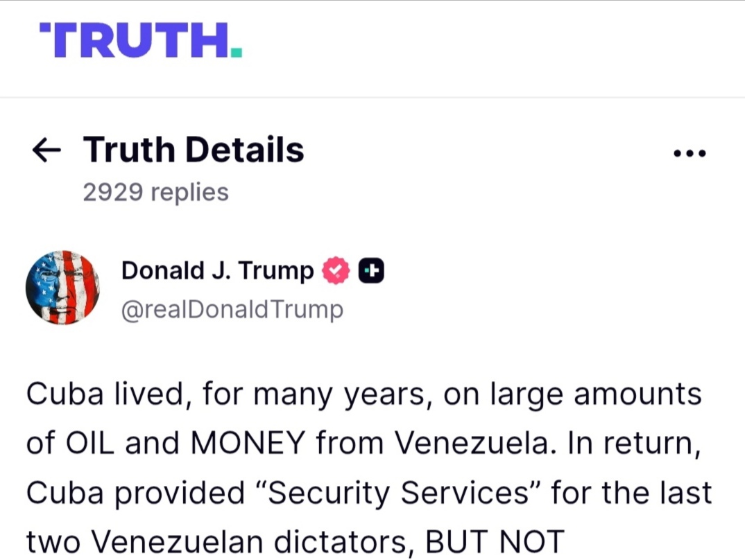 近日,在抓捕了委内瑞拉总统马杜罗后,美国总统唐纳德-特朗普在其自己的社交媒体“真实社交”上发文,矛头直指古巴。